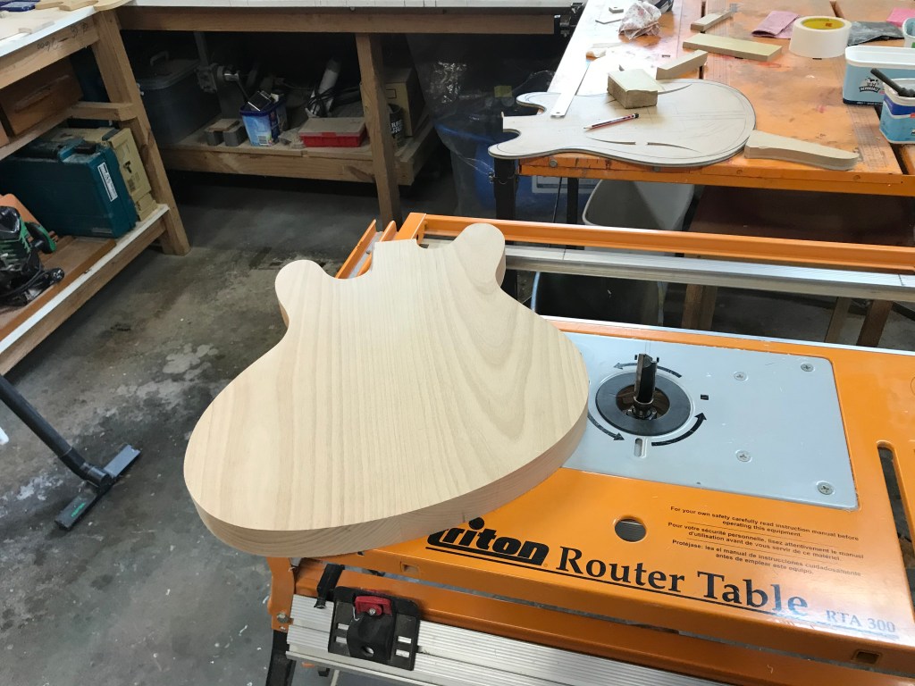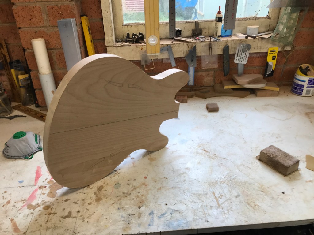 It makes a nice body, the Alder wood, but it can be a bit tricky to machine, especially if your drill bit has lost a bit of its edge. This one isn’t too old and worn, but even that can make a difference.