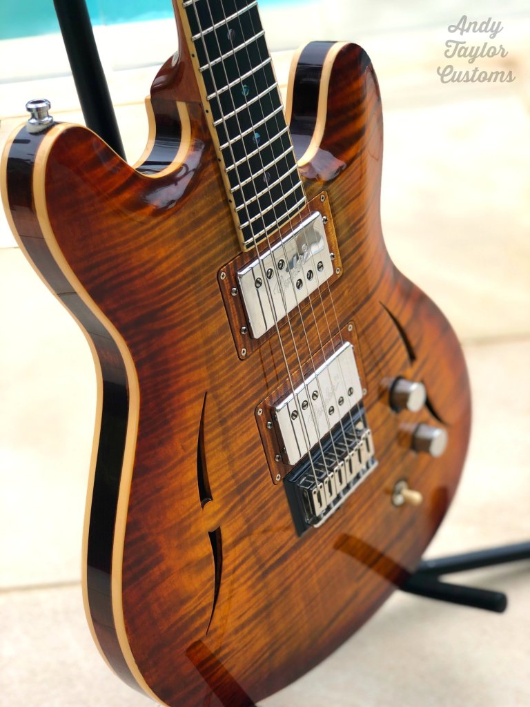 Alder body with flame maple cap.